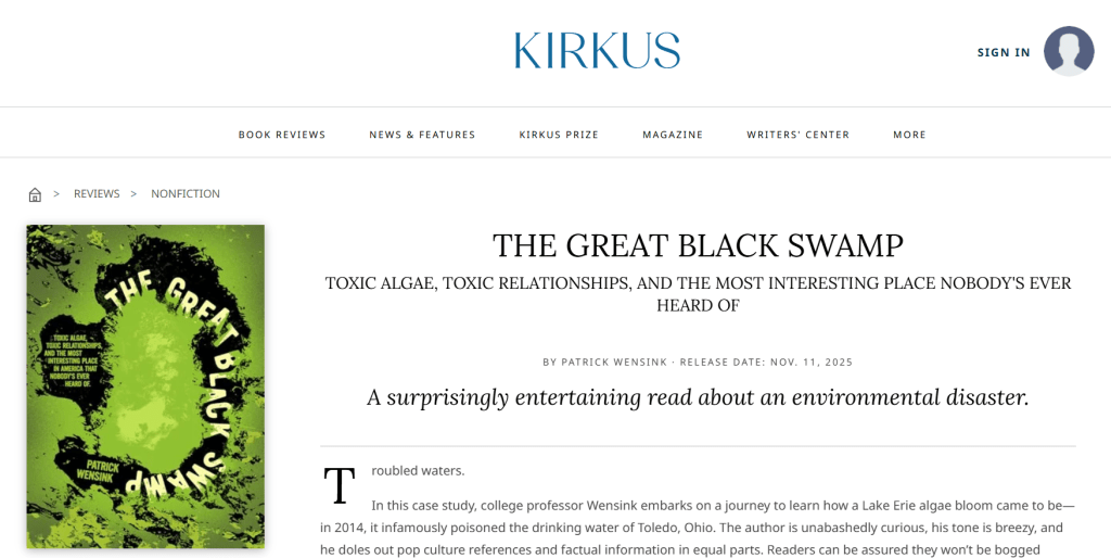 Great Lakes Now is running an excerpt of “The Great Black Swamp: Toxic Algae, Toxic Relationships, and The Most Interesting Place Nobody’s Ever Heard Of.”